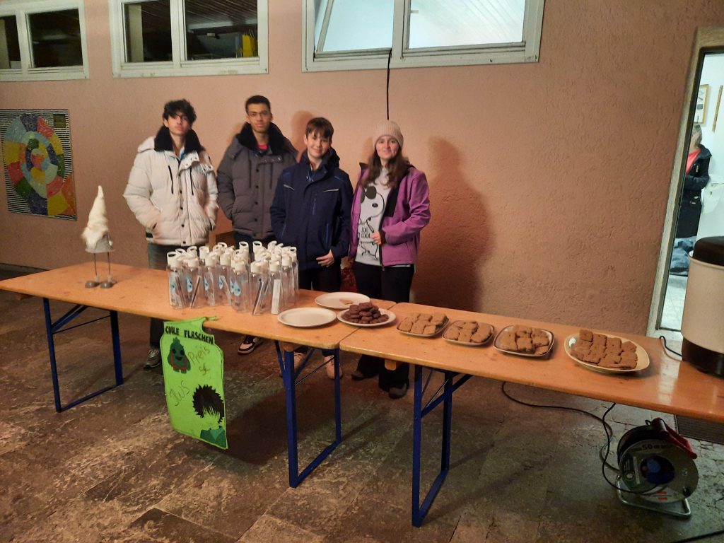 Der große Chor umrahmte die Öffnung mit fröhlichen Weihnachtsliedern und anschließend versorgten uns Schülerinnen und Schüler der Klasse 10a zusammen mit dem Förderverein mit Punsch und Keksen.