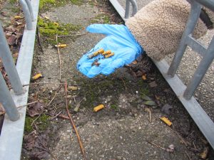 Insgesamt sammelte die Klasse über 500 Zigarettenstummel, zahlreiche leere Flaschen, Verpackungsmüll, sogar alte Turnschuhe und vieles mehr.